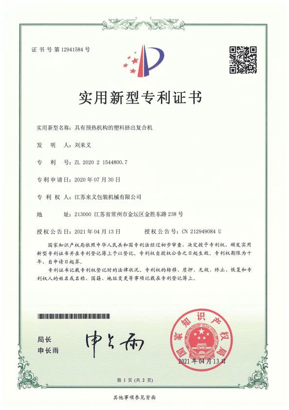 江蘇來義包裝機械有限公司成立于2007年,位于長三角經濟帶常州市金壇區,主要從事擠出復合生產線的研發、生產與銷售。依托全方位的技術開發、試驗、交流、咨詢、服務,致力于多領域的科技推廣和應用。多年來,公司始終秉承“義”的價值觀,堅守“專注研發、質量第一、客戶至上”的經營理念,孜孜以求,持續深耕,擁有各項專利達60余項,先后榮獲“江蘇省高新技術企業”、“江蘇省民營科技企業”、“中國人民銀行AAA信用評級”等榮譽稱號,成為行業佼佼者。